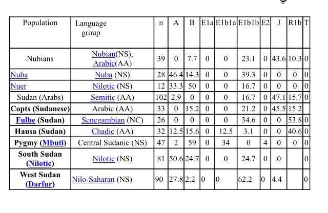 حسب دراسة جامعة الخرطوم المرفقة، تتواجد السلالة R1b بكثافة بين الفولاني والهوسا وكذلك بنسبة كبيرة بين عرب السودان ( قبائل الجعليين الكبرى) كما اشارت الدراسة.