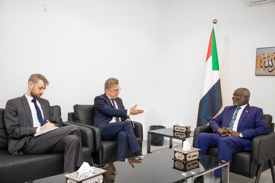 وبحث وزير المالية والتخطيط الاقتصادي د. جبريل إبراهيم خلال لقائه بالوزارة اليوم المبعوث الألماني الخاص للقرن الإفريقي السيد هيكو نتشكا، مطلوبات تحقيق السلام وإعادة الإعمار والتنمية.
