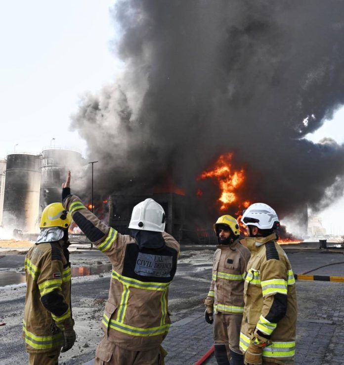 وتشارك في جهود الإسناد فرق من الدفاع المدني في إمارات الدولة، إلى جانب وزارة الدفاع، والحرس الوطني، والطيران المشترك، وبلديات مدينة الشارقة والحمرية، في إطار منظومة استجابة موحّدة تهدف إلى احتواء الحريق، والتعامل معه وفق أعلى معايير السلامة والكفاءة.
