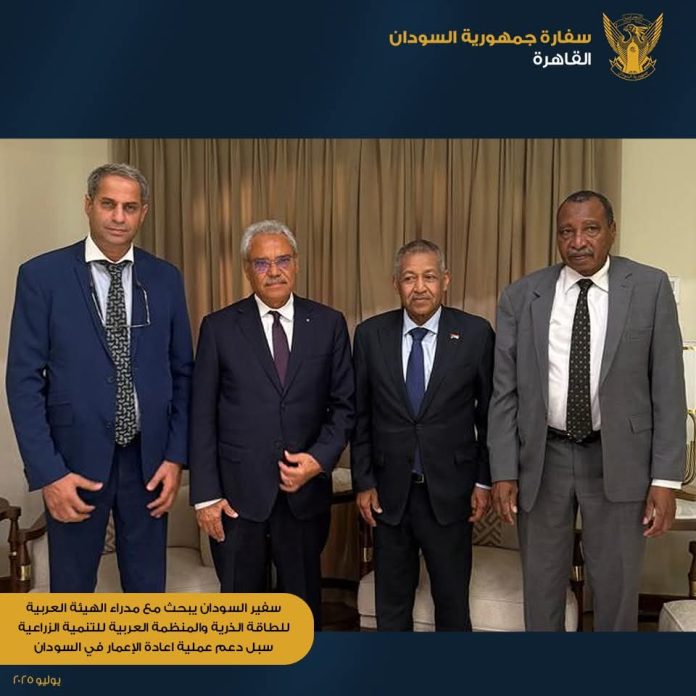 وأكد السفير تطلع السودان إلى انخراط أكبر من المنظمات العربية المتخصصة في جهود إعادة الإعمار، معربًا عن تقديره للدور الفاعل الذي تقوم به منظمتي التنمية الزراعية والطاقة الذرية في دعم مساعي تعزيز العمل العربي المشترك وإحداث نقلة نوعية في مجالات الطاقة السلمية والتنمية الزراعية.