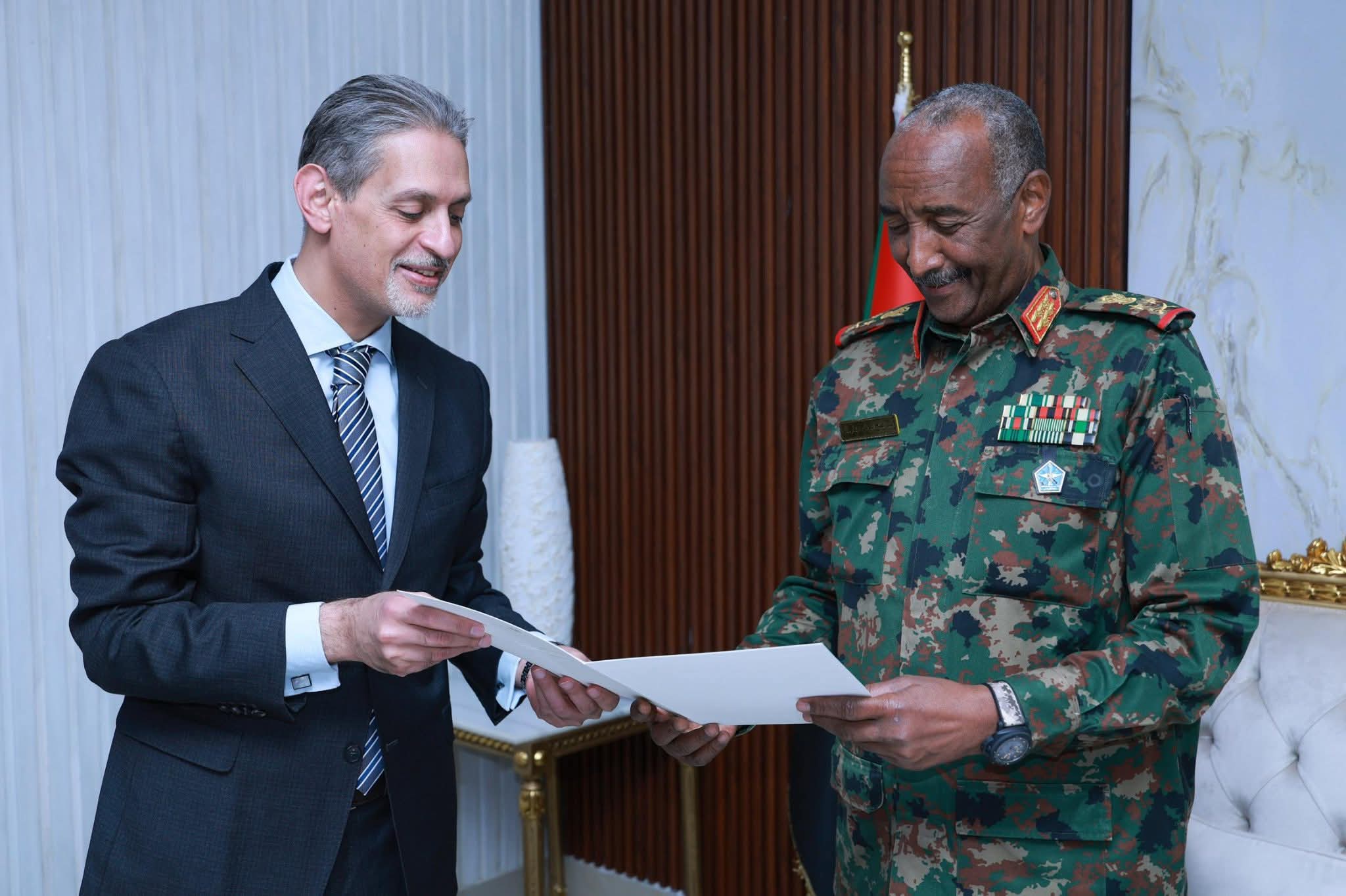 تسلم رئيس مجلس السيادة القائد العام للقوات المسلحة، الفريق أول عبد الفتاح البرهان، اليوم، رسالة خطية من رئيس جمهورية مصر العربية عبد الفتاح السيسي، تتعلق بمسار العلاقات الثنائية بين البلدين وسبل دعمها وتطويرها وتقويتها في كافة المجالات.
