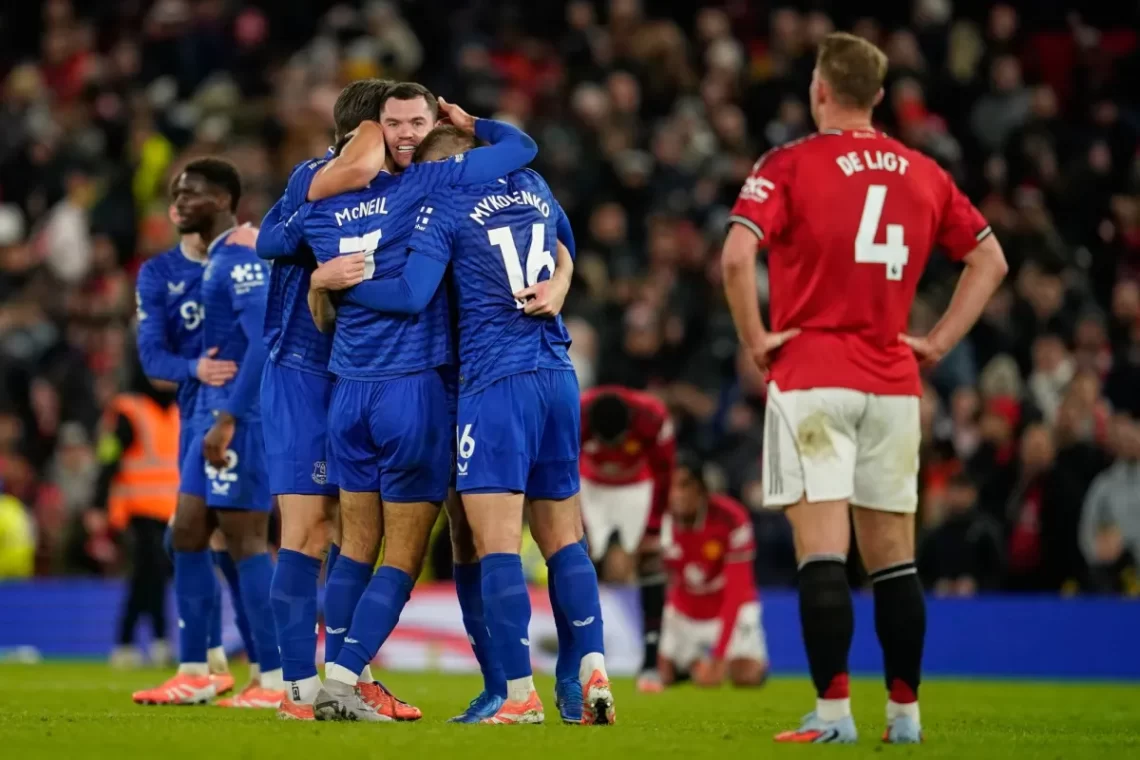 كسر إيفرتون سلسلة طويلة من النتائج السلبية أمام مانشستر يونايتد وحقق أول انتصار له في الدوري الإنجليزي الممتاز على حسابه منذ 12 عاماً، وذلك في مباراة مثيرة أقيمت مساء الاثنين. الفريق الزائر خاض معظم اللقاء بعشرة لاعبين بعد طرد لاعب الوسط إدريسا جانا غاي في الدقيقة 13 إثر مشادة مع زميله مايكل كين، لكنه تمكن من تجاوز هذه العقبة بفضل هدف رائع سجله كيرنان ديوسبري-هول ليمنح فريقه فوزاً ثميناً بنتيجة 1-0 ويعيده إلى مسار الانتصارات أمام أحد أعرق المنافسين في البطولة.
