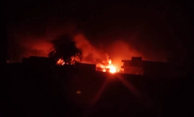 وبث ناشطون مقاطع فيديو على مواقع التواصل تُظهر اندلاع النيران في السيارات المحمّلة بالبضائع، دون أن ينجح المتطوعون في إطفاء الحرائق.