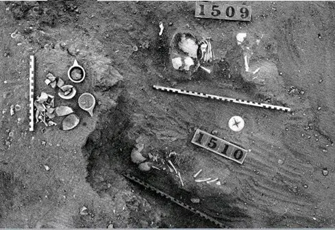 يذكر أنه في عام 1924، أثناء الحكم الثنائي الإنجليزي-المصري، عثر المستر بوند على قبر قديم قرب منزله في سنجة، بمحض الصدفة، ليجد جمجمة بشرية متحجرة ضمن رفات إنسان قديم.